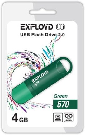 4 ГБ, USB 2.0 Type-A, с колпачком, пластик, скорость 15/8 МБ/с, цвет зеленый