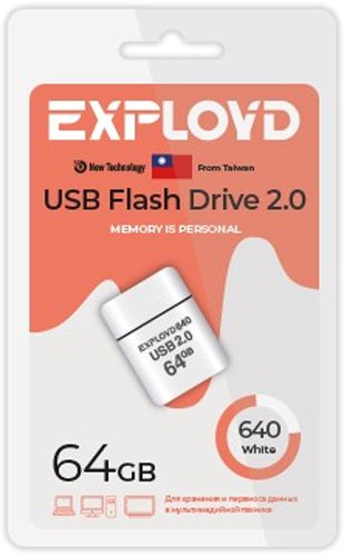 64 ГБ, USB 3.2 Gen 1 Type-A (5 Гбит/сек), с колпачком, пластик, скорость 15/8 МБ/с, цвет белый