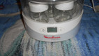 Крутая йогуртница от Мулинекс. В идеальном состоянии, все целое и полный комплект. В составе семь стеклянных емкостей для йогурта, крышечки с возможностью выставлять дату.
