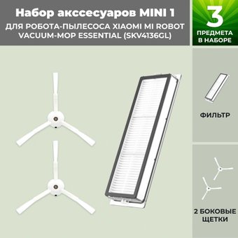 Описание Набор аксессуаров Mini 1 для робота-пылесоса Xiaomi Mi Robot Vacuum-Mop Essential (SKV4136GL). Состоит из 3-x предметов: фильтр (1 шт.), боковая щетка (2 шт.). | |