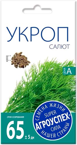 Описание Свежая зелень все лето. Позднеспелый уникальнвый сорт укропа, относящийся к типу нежелтеющих укропов. Растение кустовое, высотой 47-56 см, в фазе цветения - коническое, высокорослое, мощное (120-150 см), в розетке 20-30 вертикально расположенных листьев. Лист крупный, со средним восковым налетом, длинночерешковый (длина 16 см). Масса растения 71-97 г. Практически не стрелкуется. | |