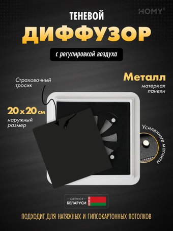 Описание ✅ Вентиляционная решетка теневая с регулировкой воздуха HOMY AIR Квадратный AS125BR (20x20) — это современное решение для вентиляционных систем, которое эффективно очищает и освежает воздух в вашем помещении. Устройство устанавливается внутри натяжного потолка или потолка из гипсокартона, оставляя на виду только стильную магнитную декоративную панель с теневым эффектом. | |