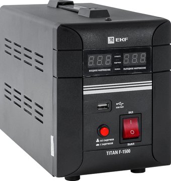 стабилизатор, 2 розетки Schuko (евро с заземлением), 1500 VA / 900 Вт/USB