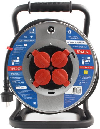 удлинитель на катушке, кабель 50 м, 4 розетки Schuko (евро с заземлением) / 3500 Вт