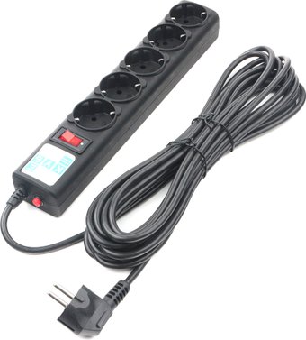 сетевой фильтр, кабель 5 м, 5 розеток Schuko (евро с заземлением) / 2200 Вт