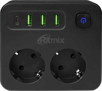 сетевой фильтр/разветвитель, кабель отсутствует, 2 розетки Schuko (евро с заземлением) / 4000 Вт/USB
