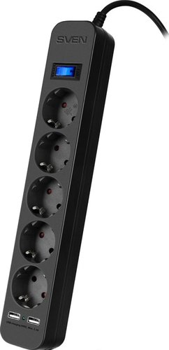 сетевой фильтр, кабель 1.8 м, 5 розеток Schuko (евро с заземлением) / 2200 Вт/USB