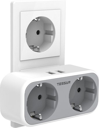 сетевой фильтр/разветвитель, кабель отсутствует, 2 розетки Schuko (евро с заземлением) / 3600 Вт/USB