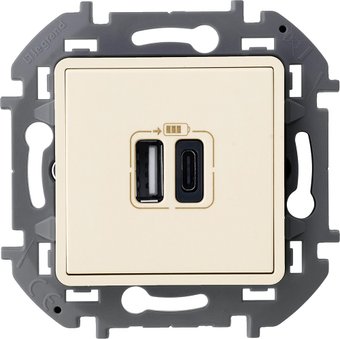 розетка USB двойная, скрытый монтаж, пластик/металл, цвет: слоновая кость