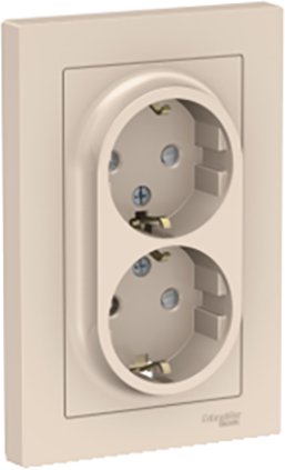 розетка двойная, скрытый монтаж, с заземлением, винтовая клемма, защита от детей, пластик, цвет: бежевый