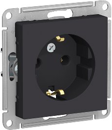 розетка одинарная, скрытый монтаж, с заземлением, винтовая клемма, пластик, цвет: черный
