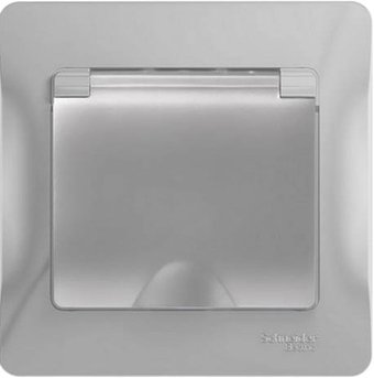 розетка одинарная, скрытый монтаж, с заземлением, винтовая клемма, защита от детей, пластик, цвет: алюминий