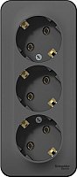 розетка тройная, накладной монтаж, с заземлением, пластик, цвет: черный
