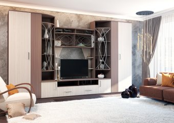 Описание В гостиной Атланта строгость линий разбавляется симметричным витражным рисунком, который создает настроение и придает всей композиции элегантную индивидуальность. | |