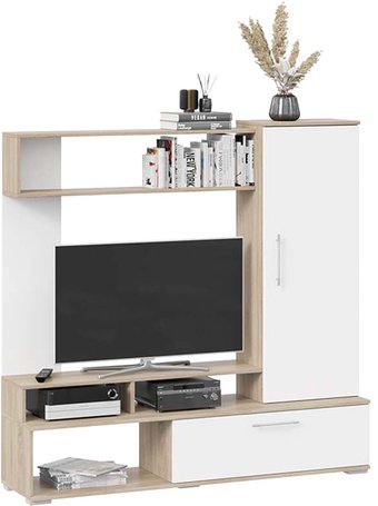 Описание Мини-стенка "Сиена" (Дуб Сонома/Белый ясень) - это наилучшее соотношение цены и качества. Кромка - ПВХ. Ручки - пластик. | |