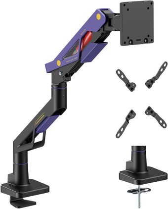 кронштейн для монитора, 24-57", 1 монитор, настольный, с регулировкой поворота, с регулировкой высоты, с кабель-каналом, струбцинное крепление, наклон -45-70°, поворот -90-90°, цвет фиолетовый/черный