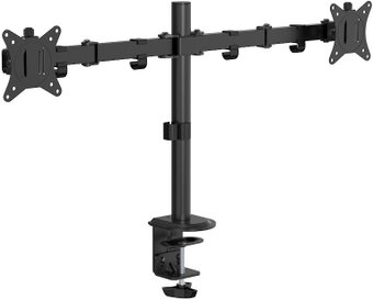 кронштейн для монитора, 17-32", 2 монитора, настольный, с регулировкой поворота, с регулировкой высоты, с кабель-каналом, струбцинное крепление, наклон 90°, поворот 180°, цвет черный