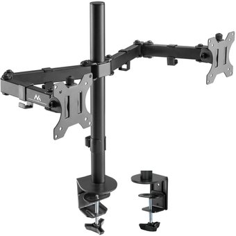 кронштейн для монитора, 17-32", 2 монитора, настольный, с регулировкой поворота, с регулировкой высоты, с кабель-каналом, струбцинное крепление, наклон 45°, поворот 180°, цвет черный