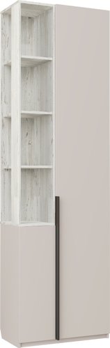 шкаф-пенал, для жилой комнаты/для спальни, двухдверный, наполнение комбинированное, 9 полок, цвет: дерево выбеленное/белый/серый, 65.1x35x220.5 см