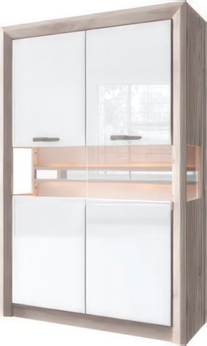 шкаф-витрина, для жилой комнаты/для столовой, двухдверный, наполнение платяное, цвет: белый/дерево светлое/дерево с серым оттенком, 102.2x36.7x152.7 см