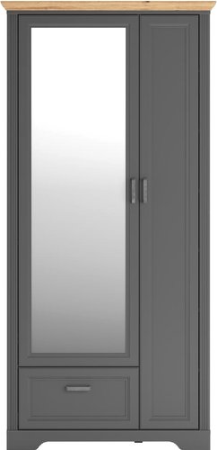 шкаф распашной, для жилой комнаты/для прихожей/для спальни, двухдверный, наполнение платяное, зеркало, цвет: дерево средних тонов/серый, 98x41x204 см