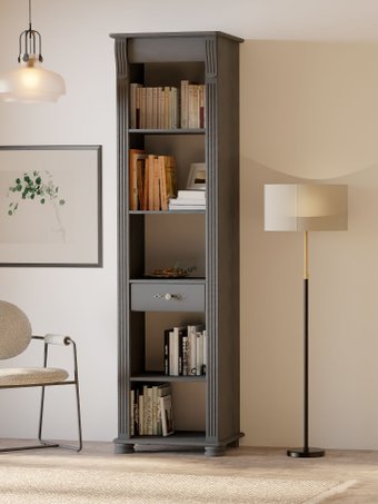 книжный шкаф, для жилой комнаты/для офиса, без дверей, наполнение многоцелевое, цвет: серый, 54x42x195 см