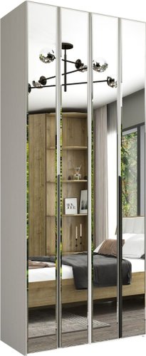 шкаф-гармошка, для жилой комнаты, двухдверный, наполнение платяное, зеркало, цвет: белый, 100x57.6x240 см