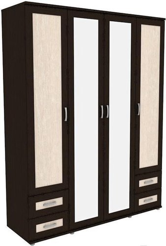шкаф распашной, для спальни/для жилой комнаты, четырехдверный, наполнение комбинированное, зеркало, 12 полок, цвет: дерево светлое, 179x57x232 см