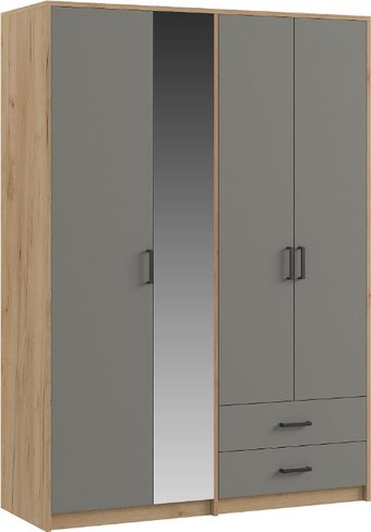 шкаф распашной, для спальни/для жилой комнаты, четырехдверный, наполнение платяное, зеркало, 2 полки, цвет: дерево с яркой текстурой, 147.8x54x207.4 см