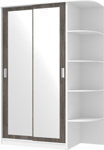шкаф-купе, для жилой комнаты/для спальни/для детской/для гардеробной/для прихожей, двухдверный, наполнение комбинированное, зеркало, цвет: белый/дерево средних тонов, 152x65x220 см