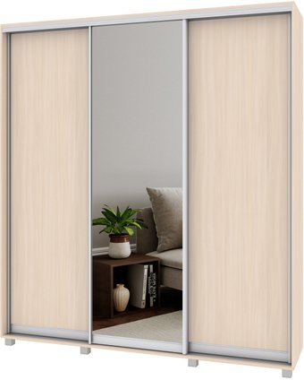 шкаф-купе, для жилой комнаты/для прихожей/для спальни, трехдверный, наполнение платяное, зеркало, цвет: дерево светлое, 200x45x220 см