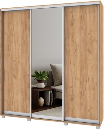 шкаф-купе, для жилой комнаты/для прихожей/для спальни, трехдверный, наполнение платяное, зеркало, цвет: дерево средних тонов, 200x45x220 см
