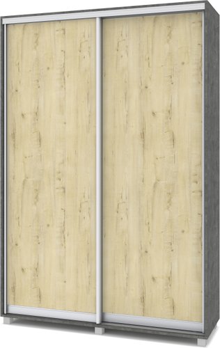 шкаф-купе, для жилой комнаты/для прихожей/для спальни, двухдверный, наполнение платяное, 7 полок, цвет: дерево светлое/серый, 150x45x220 см