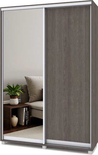шкаф-купе, для жилой комнаты/для прихожей/для спальни, двухдверный, наполнение платяное, зеркало, цвет: дерево темное, 150x45x220 см