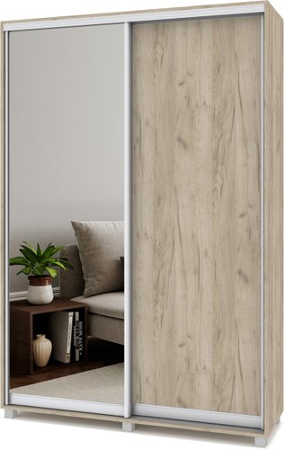 шкаф-купе, для жилой комнаты/для прихожей/для спальни, двухдверный, наполнение платяное, зеркало, цвет: дерево светлое/серый, 150x45x220 см