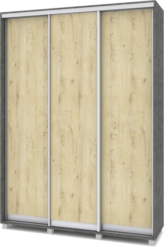 шкаф-купе, для жилой комнаты/для прихожей/для спальни, трехдверный, наполнение платяное, 7 полок, цвет: дерево темное/дерево светлое/серебристый, 160x45x220 см