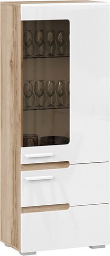 шкаф-витрина, для жилой комнаты, однодверный, 1 полка, цвет: коричневый/белый, 59x35.7x151.2 см