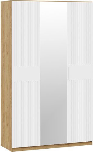 шкаф распашной, для спальни/для жилой комнаты, трехдверный, наполнение комбинированное, зеркало, 5 полок, цвет: дерево средних тонов/белый, 135x52.8x226 см