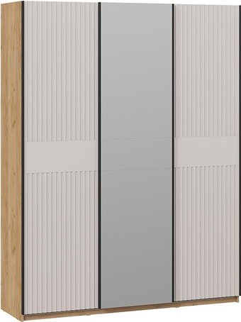 шкаф-купе, для жилой комнаты/для спальни, трехдверный, наполнение платяное, 8 полок, цвет: бежевый/дерево с яркой текстурой, 176.5x58.8x229.2 см