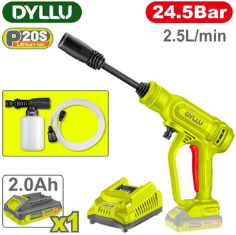 | Комплектация | - Мойка высокого давления - 1 шт. - Аккумулятор DTLBP520 2,0 Ач - 1 шт. - Зарядное устройство DTFCP518 - 1 шт. - 2-х режимный распылитель - 1 шт. - Шланг для подачи воды 3 м - 1 шт. - Пеногенератор 300 мл - 1 шт. - Коробка |