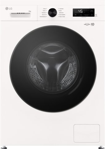 отдельностоящая, стиральная машина, с паром, загрузка до 6 кг, отжим 1200 об/мин, глубина 44 см (с люком 50 см), энергопотребление A, прямой привод, 10 программ, 6 Motion (LG)