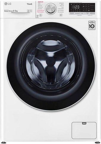отдельностоящая, стирально-сушильная машина, сушка: естественная конденсация, с паром, загрузка до 8 кг, отжим 1400 об/мин, глубина 56 см (с люком 61.5 см), энергопотребление A, прямой привод, 14 программ, AI DD (LG)