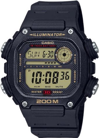 мужские, механизм электронный, корпус: пластик, 50.5 мм, минеральное стекло, 200 м, браслет пластиковый