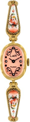 женские, механизм механический с ручным заводом, корпус: латунь, пластиковое стекло, браслет металлический