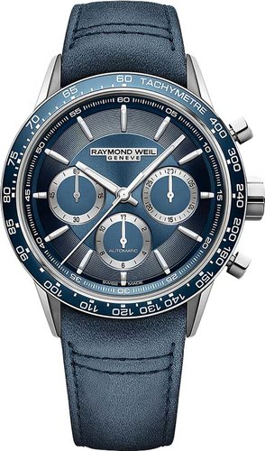 Описание Мужские наручные часы Raymond Weil Freelancer 7741-SC3-50021. Механические с автоподзаводом. Пружина механизма заводится автоматически благодаря естественным движениям владельца в процессе ежедневной носки часов. Ремешок изготовлен из кожи. Функция хронографа. Браслет из нержавеющей стали. Сапфировое стекло. Искусственно изготовленное стекло с высокой прочностью и устойчивостью к царапинам. Часы являются водонепроницаемыми до 10 Бар. Цвет циферблата: Синий. Цвет корпуса: Синий. На стрелки и отметки нанесен светонакопительный состав, благодаря этому считывать информацию с циферблата возможно и в темноте. Толщина: 14 мм. Гарантия: 2 года. | |
