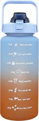 2 л, поликарбонат, для холодных напитков, закручивающаяся крышка, мерная шкала, ремешок, голубой/оранжевый