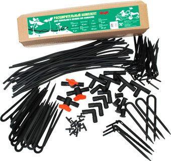 Описание Комплектация: шланг подающий 40 см -20 шт, капельницы -20 шт, тройник малый - 10 шт, кран - 3 шт, уголок для магистрального шланга - 5 шт, тройник большой - 5 шт, заглушка для магистрального шланга - 5шт, прижимы для магистрального шланга 20 шт. |