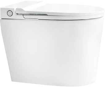 умный (электронный) унитаз, приставной (с биде), конструкция: без бачка, задний подвод воды, горизонтальный выпуск, с сиденьем, безободковый