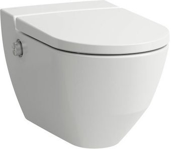 подвесной (с биде), конструкция: без бачка, задний подвод воды, горизонтальный выпуск, с сиденьем, безободковый