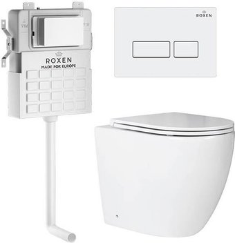 приставной, конструкция: без бачка, задний подвод воды, горизонтальный выпуск, двухрежимный слив, с сиденьем, безободковый